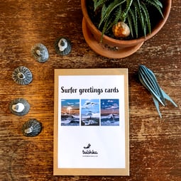 Wave Project Contemplation print - surfer watching big waves with seagulls flying in stormy sky
