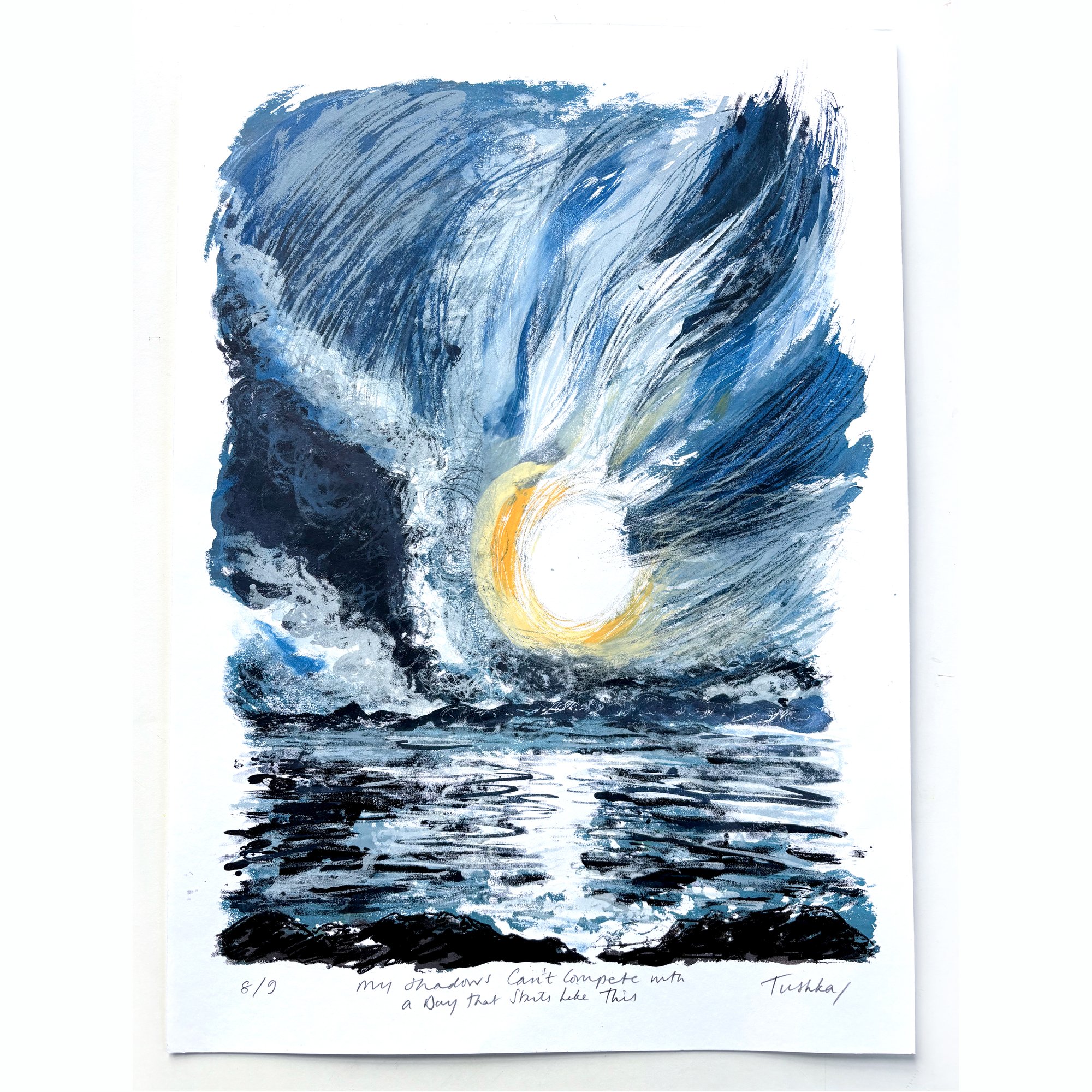 Limited edition print run of 9 prints on bread and butter artists paper - Hand drawn artwork and hand screen printed. Prints will vary due to the hand made nature of the screen print and the gradient effect on the background.